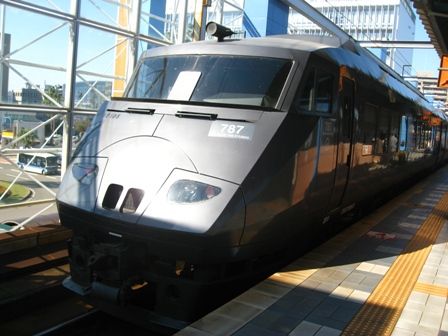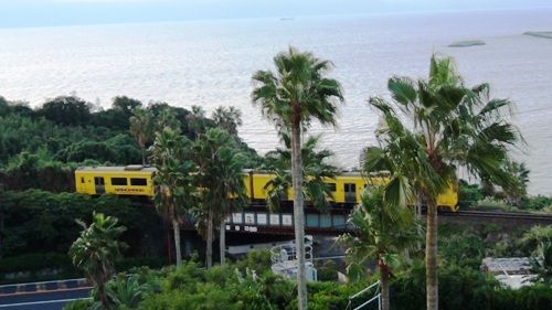早朝、ホテルの前を電車が走ります。枕崎指宿線です。