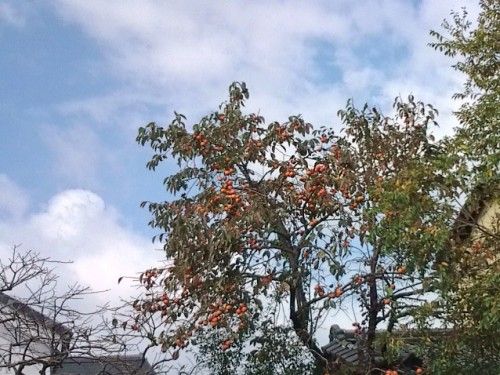 柿の実がなってました。青空がきれいです。