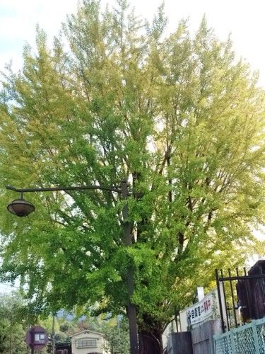 ならまちの有名なまんまるイチョウの木 こちら側は黄葉してます。