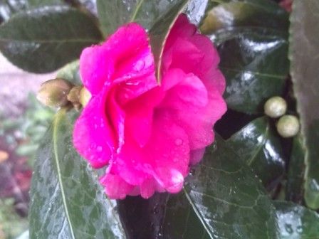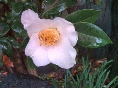 白い椿が咲いてました。