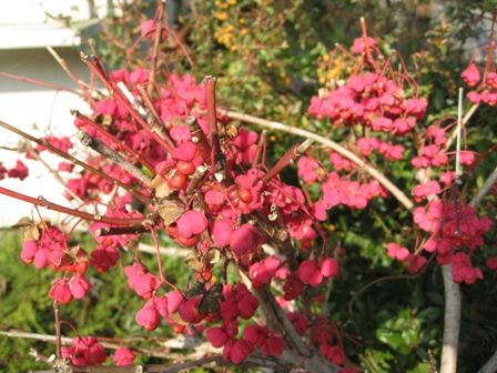 マユミの実が一杯 これは、挿し木をしてあるんでしょうか。