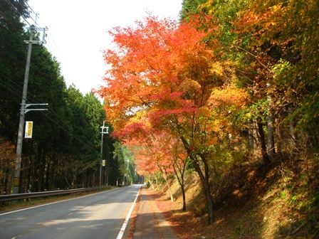 道路沿いもまた綺麗な紅葉が見られます。