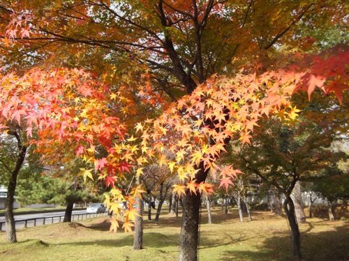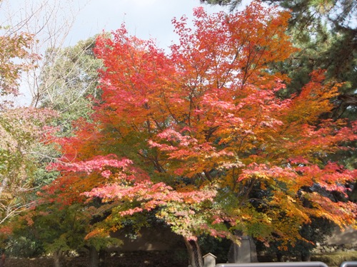 池から少し離れた道路沿いに綺麗なカエデの紅葉がありました。