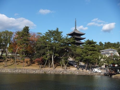 猿沢池越しの五重塔 青空がすっごく綺麗です。