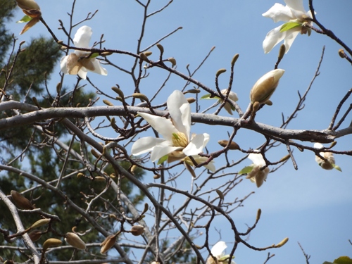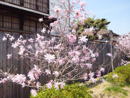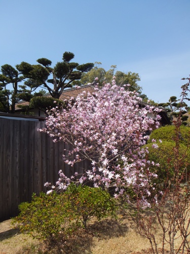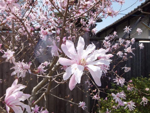 写経道場の前のベニバナシデコブシが満開