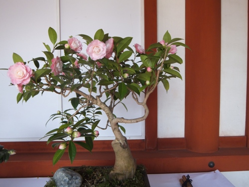玄奘三蔵院で、椿の盆栽展が行われていました。