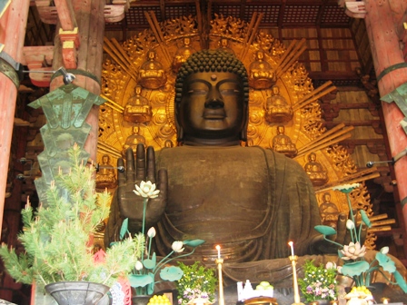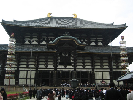 さて、昼食後どうしようかと考えまして、東大寺の大仏様を見に行く事にしました。もう何年振りでしょうか。すっかり皆体格が良くなったので、柱の鼻の穴を抜けられるか、挑戦しようと言う事になりました。