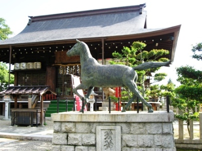 本殿と乃木希典の愛馬