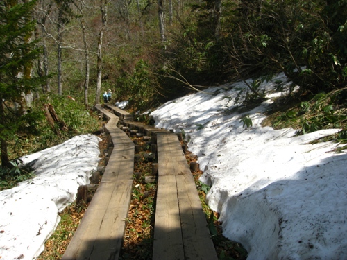 スタートの鳩待峠から山の鼻までは、3、3kmで、ほとんどがきつい階段や