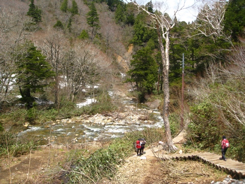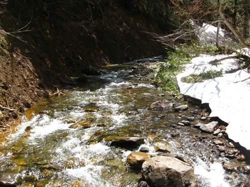 川の水がめちゃめちゃ綺麗です。雪解け水が流れているのです。