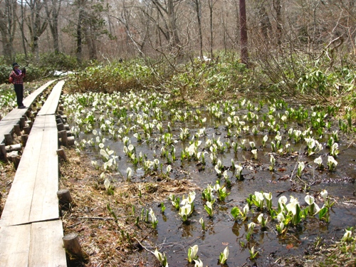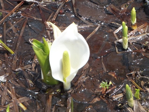 ミズバショウは咲き始めで、蕾もまだ一杯ありました。