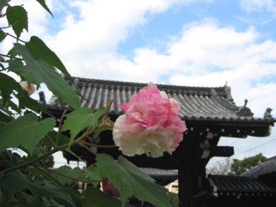そして、山門をくぐると一重のピンクと白の芙蓉、八重の酔芙蓉がまだまだ綺麗に咲いていました。
