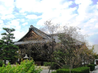 ふと本堂の前を見るとありました。十月桜です。遠くから見るとまるで、桜の木にポツポツと雪が積もっているように見えます。このお寺では、「御会式(おえしき)桜」と呼ばれています。「日蓮大聖人が御入滅された10月13日前後から咲き始め、翌年4月8日のお釈迦様の誕生の頃に満開になる珍しい桜」と言う事で、こう呼ばれているそうです。日蓮宗の門下では、皆こう呼ばれているみたいです。