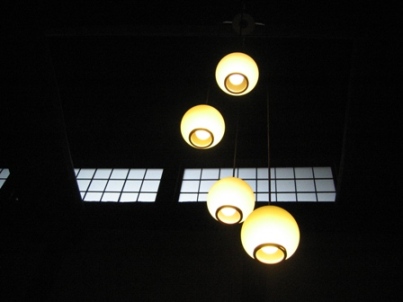 社務所の照明はコードの長短の妙とでもいうのでしょうか、素敵ですね。