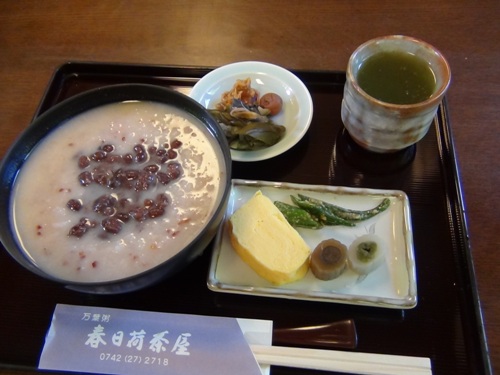 近くの春日荷茶屋で、万葉粥セットを頂きました。