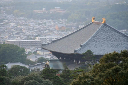 大仏殿の屋根が見えます。大仏様のお顔が拝見出来る扉の部分も見えます。