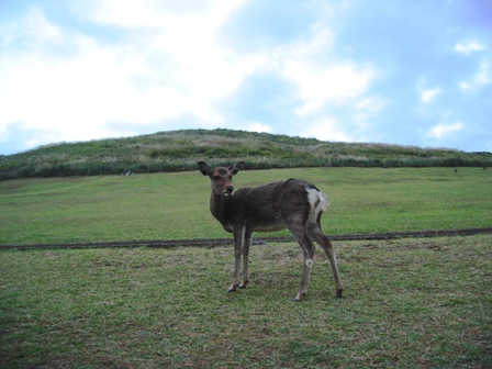若草山の頂上にまで鹿がいるとは驚きです。登ってきたのでしょうか。