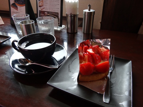 近くのホテルの喫茶店で、ケーキとお茶を頂きました。