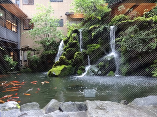 池には、滝があって、立派な鯉がたくさんいます。