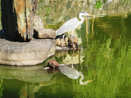 猿沢池のアオサギと亀たち