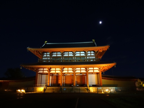 朱雀門と半月(右斜め上に見えます。)
