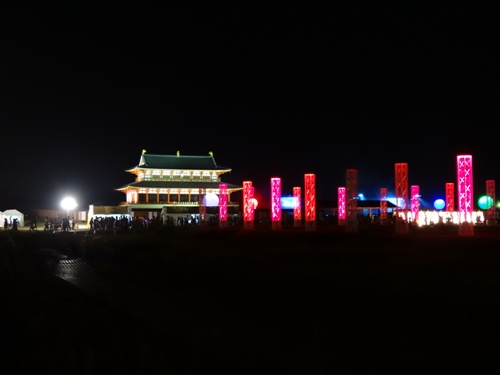 本日のメインは大極殿 サーチライトが見えます。