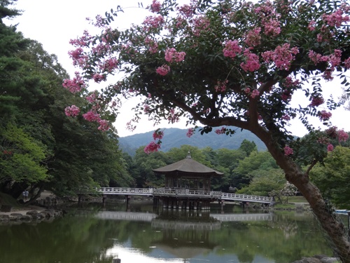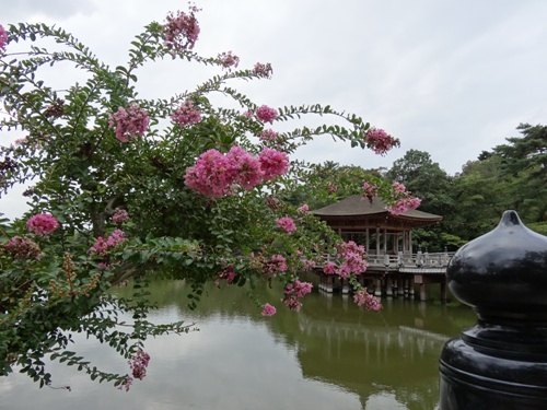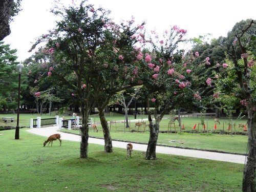 浅茅ヶ原の梅林の中にも少しサルスベリがあります。鹿も写しこんでいます。