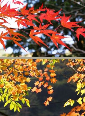 オレンジ色の明るい紅葉やらワインレッドの妖艶な紅葉やら。