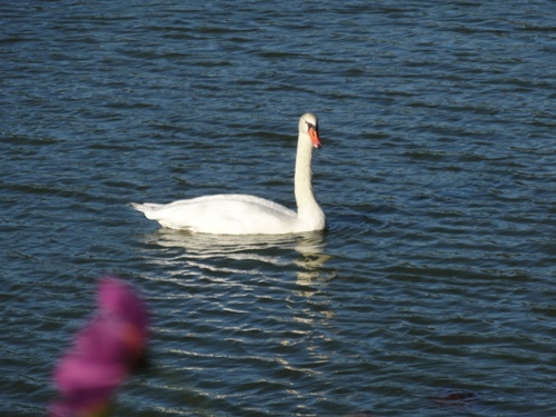 この白鳥は人に慣れていて、手をたたくと近寄って来るのです。