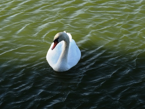 水上池には、1羽の白鳥がいます。