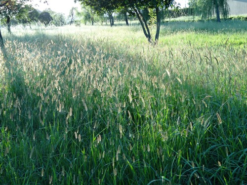 踏切を渡った所で、エノコログサ(ネコジャラシ)が陽を浴びて、輝いていました。