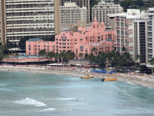私達のロイヤルハワイアンホテルが見えます。ほんと、お城みたいです。