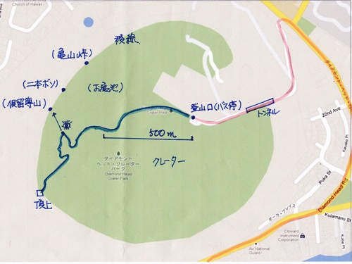 ダイヤモンドヘッドの地図です。曽爾高原に似てる部分を書きこんでます。