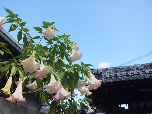 元興寺塔跡の入り口にエンゼルトランペットが咲いていました。