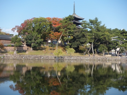 帰りに猿沢池の横を通りました。池越しの興福寺の五重塔