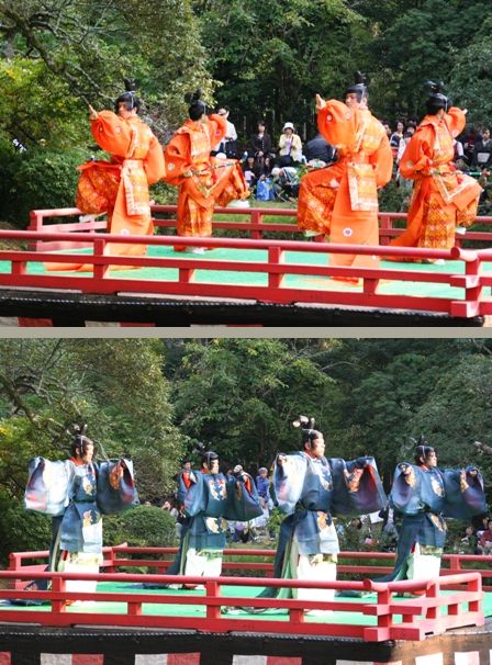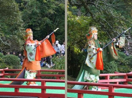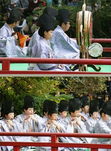 春日には、南都楽所という専属の演奏や舞をする集団があります。(皇室にもそういう集団がありすね。東儀秀樹さんはそちらのご出身です。)