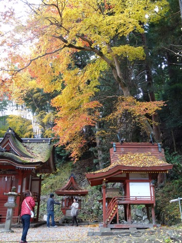 真っ赤な紅葉だけでなく、イチョウの黄葉もあります。
