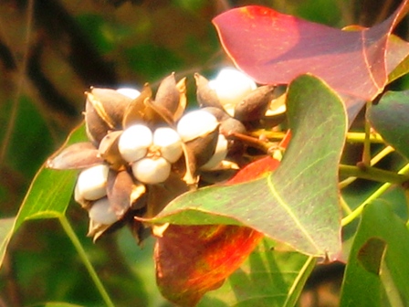 ナンキンハゼの実 殻から中の実が出て来ています。
