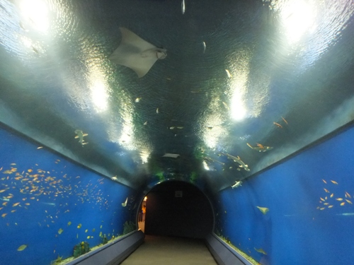 水槽のトンネル 中は私達以外ほとんど誰もいません。