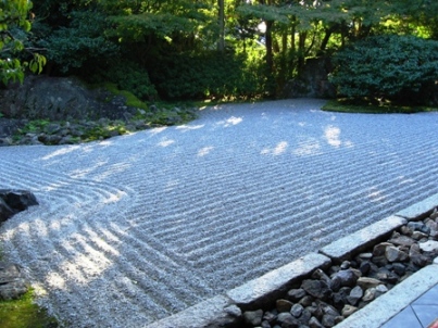 枯山水の白砂の模様はどうやって作るのだろうといつも思います。いつ見ても綺麗ですよね。