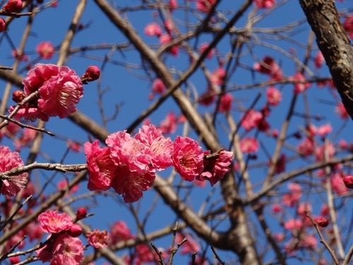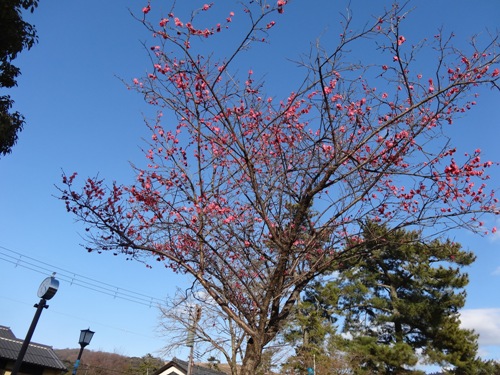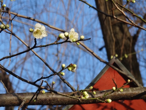 帰りに国立博物館前のバス停にいると紅梅が満開でした。