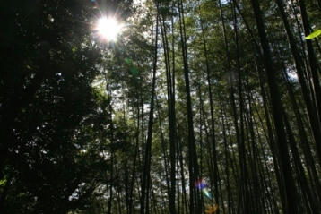 途中の竹林の木漏れ日 放射線状になってます!(by かたちゃんB)
