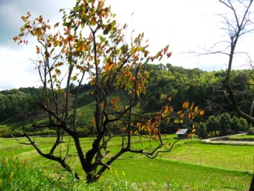 のどかな田園風景と柿の木です。(by かたちゃんA)