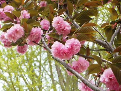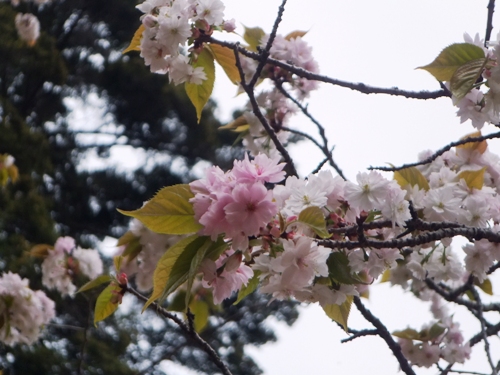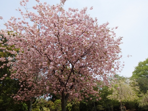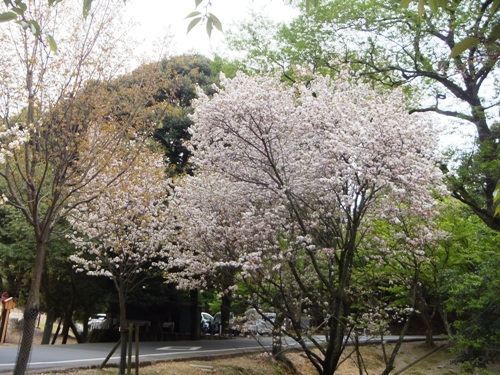 春日野園地に行きました。三社池の畔に桜の楊貴妃が咲いています。