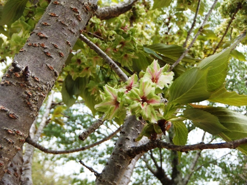 ※奈良八重桜は、蕾は赤く、花が咲いた時は白く、散る時は、また赤くなります。