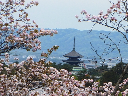茶山園地の奈良八重桜見事ですね。五重塔の向こうに薬師寺が写ってますね^^