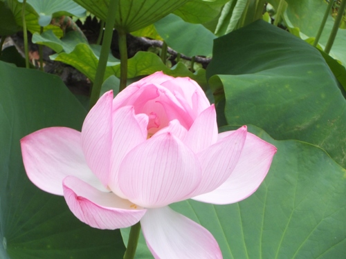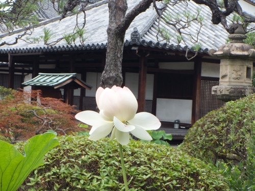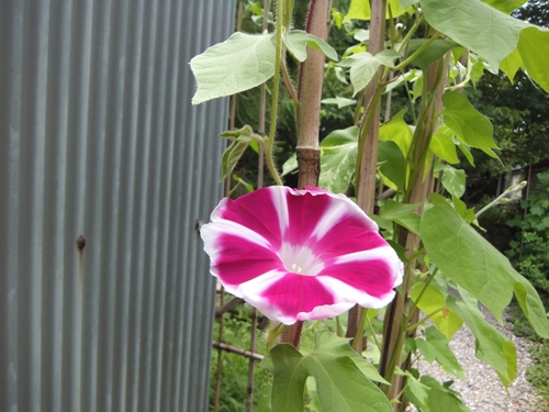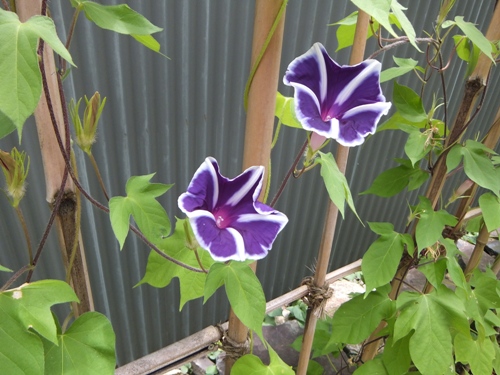 元興寺小塔院跡 朝顔、紫に白いラインが涼しげです。