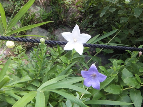 元興寺塔跡 白と紫のキキョウ