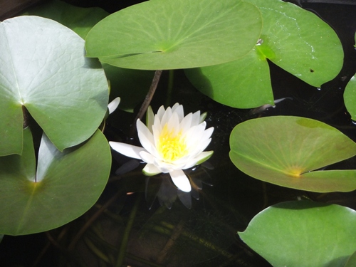 どこかの店先の睡蓮鉢に可愛いスイレンが咲いてました。