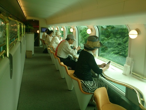 皆、一度は前に来て、先頭からの景色を眺めに来ます。男の人は、大体写真を撮られます。中には、女の人で、